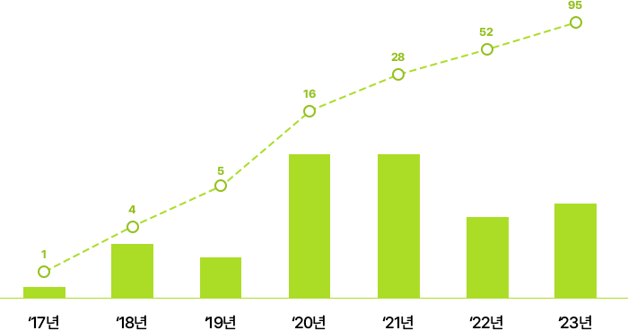 ‘16년 최초로 오리지널 웹툰을 출시한 이래 Kakao 계열 편입 시점까지 지속적으로 오리지널 웹툰 제작량을 확대해 왔습니다.